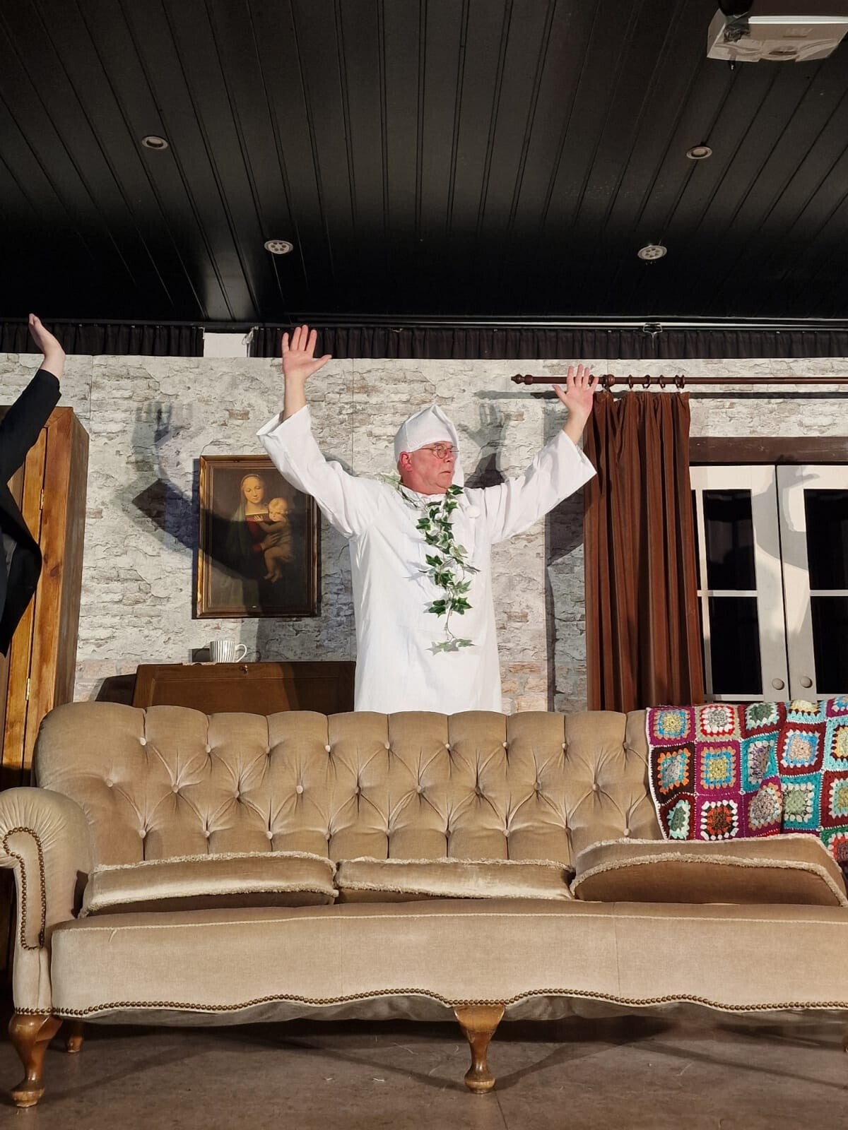 Während Türen ununterbrochen auf- und zufliegen, verstecken sich die Figuren in Schränken, wechseln hektisch ihre Rollen und rennen ständig hin und her, um nicht entdeckt zu werden. Missverständnisse stapeln sich, Eifersucht kommt ins Spiel, und selbst die Militärpolizei mischt irgendwann mit. Der völlig überforderte Bischof versucht verzweifelt, den Überblick zu behalten und Ordnung in das absurde Geschehen zu bringen, scheitert dabei jedoch immer wieder an neuen Verwicklungen.